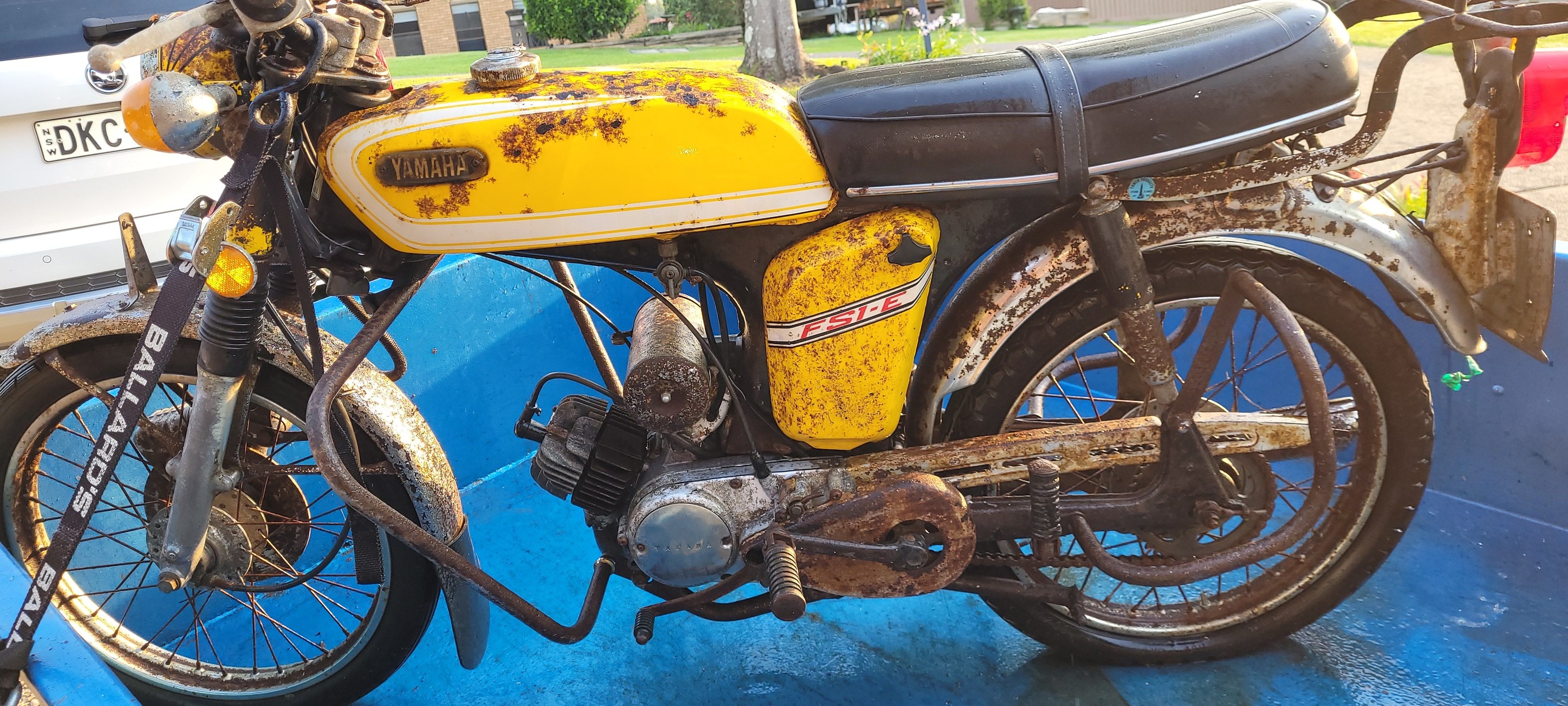 GAVIN GILL - follow the story of the Fizzy Restoration: December 2024: Following the Fizzy. Xmas day & the fizzy fired up for the first time in many years. Now to check the headlight circuit to make sure the rectifier is ok, set the timing & adjust clutch & brakes. I,m coming for you Fast Eddie! November 2024: The restoral continues, wiring done , seat recovered. Now working on the tank which was in a bad way with rust. After 6 days of vinegar treatment a few more leaks emerged. Once the liner is done its bog & paint time. October 2024: Found the motor, pulled the speedo down to fix the odometer. Ignition switch & handlbar switch repaired. Tidied up the wiring harness which back end has to be redone. Seat is ready to recover. Not hard to spend a day fixing a $30. part. September 2024: Assembly has started after sourcing replacement parts, building up the wheels & paint.Now where did I put the motor. August 2024: Been at in in the shed ,stripped the little 50cc . Some parts are kaput & some are being saved. Motor rebored by Soc ,zinc plating & a little welding by RGV Gary. Encouragement by V Twins Stewie who gave me an original 1975 sales brochure from the UK & Fast Eddie who wants some competition.